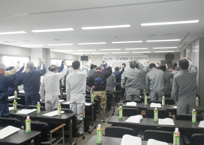 4月に就任した須藤社長は、「仕事の安全面において、自分はもちろんのことですが、周囲にも気配りし仲間を守る気持ちを持って仕事に取り組んでいただきたい。会社としても皆さんが健康で長く働いてもらえる環境を整備していきます」と全社員そして協力会社に話をしました。
